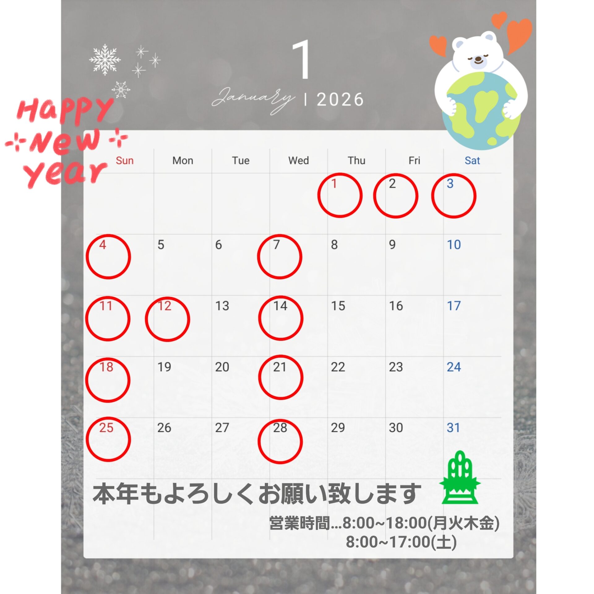 📢1月の営業日のお知らせ