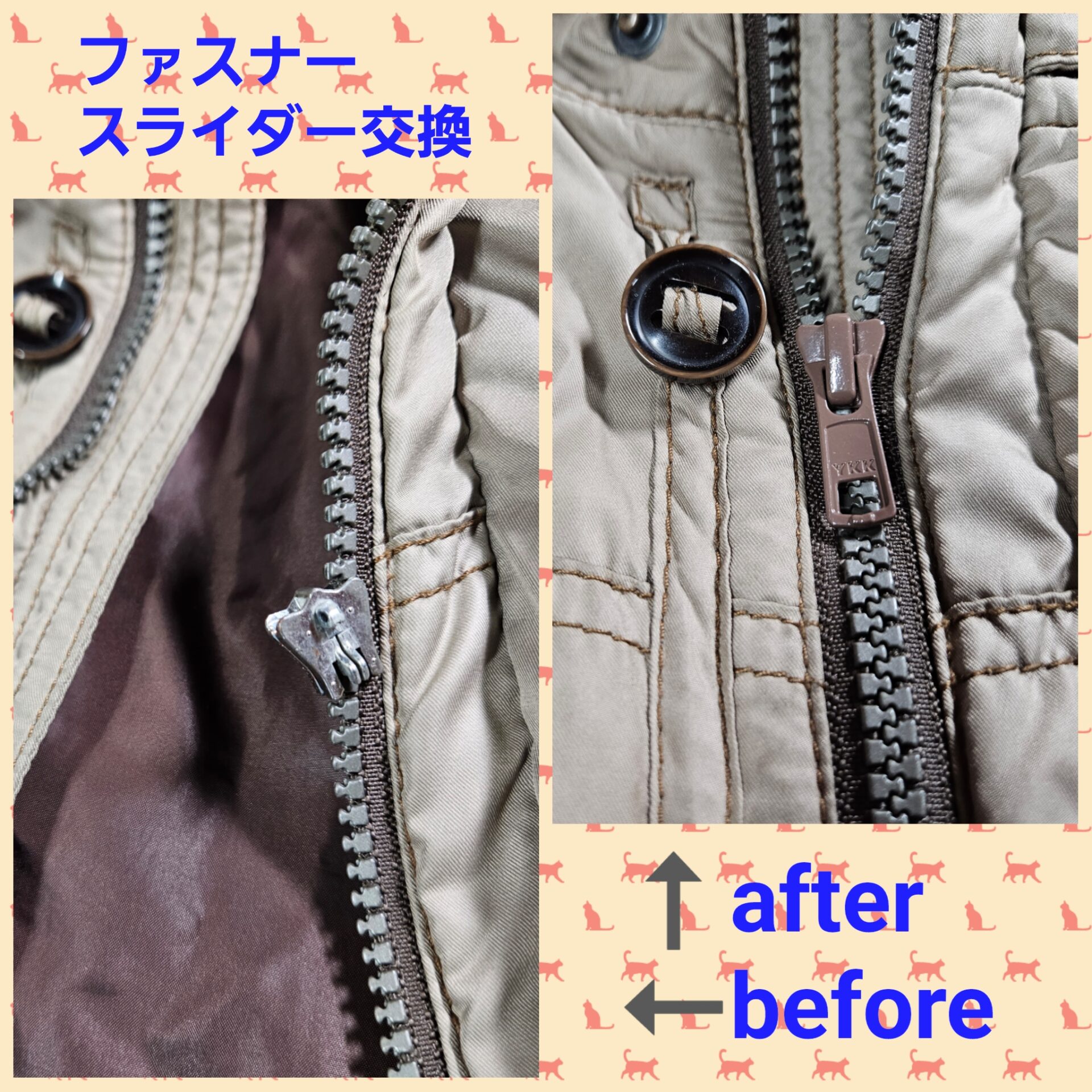 ジャンバーファスナー修理